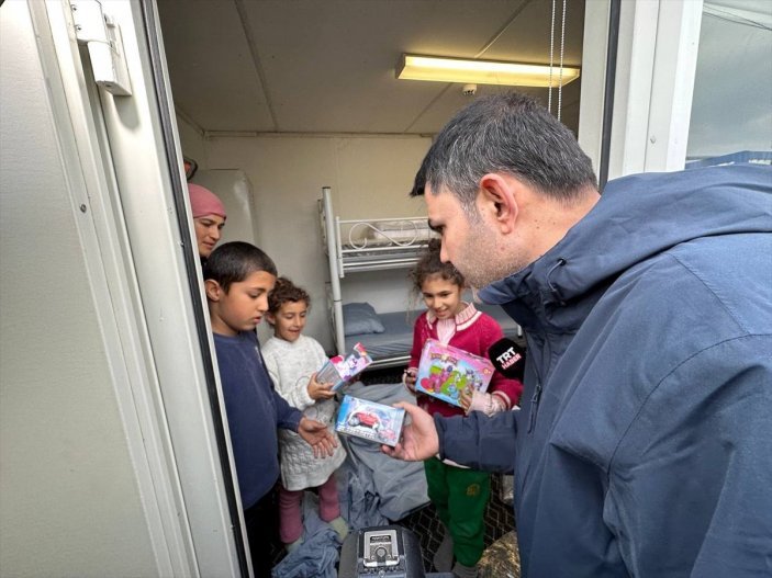 Helikopterden inerken oyuncak armağan edilen çocuklar, Bakan Murat Kurum’a teşekkür etti.