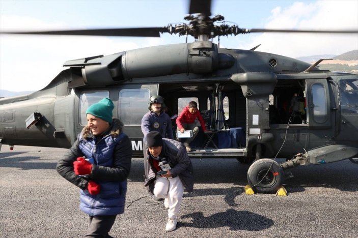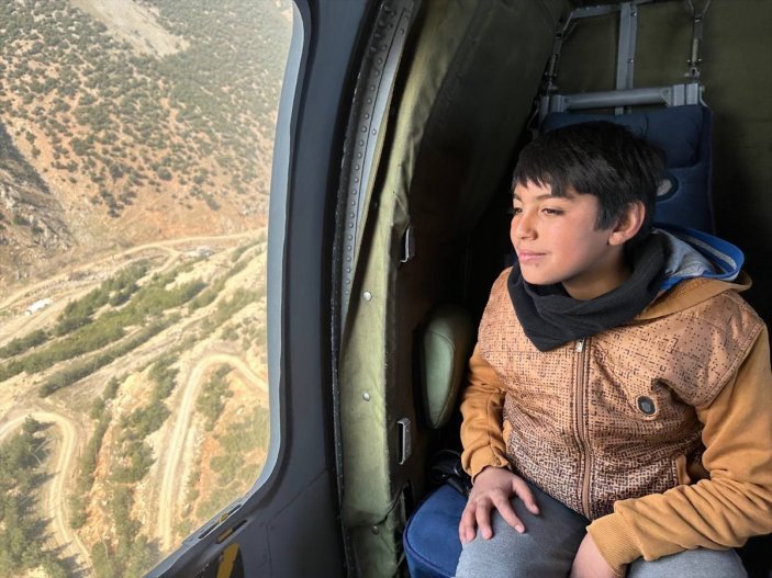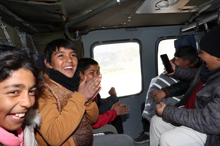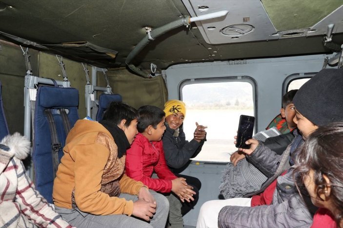 Kurum, isteklerini geri çevirmediği çocukları, alan incelemeleri için kullandığı Jandarma Genel Komutanlığına ilişkin helikoptere bindirdi.
